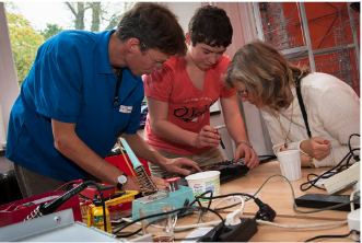 Auch wer nichts zu reparieren hat, ist herzlich willkommen, um zu reden, sich Kaffee,Tee und Kuchen zu gönnen oder einfach zuzuschauen, wie versucht wird, defekte Gegenstände wieder „zum Laufen“ zu bekommen.